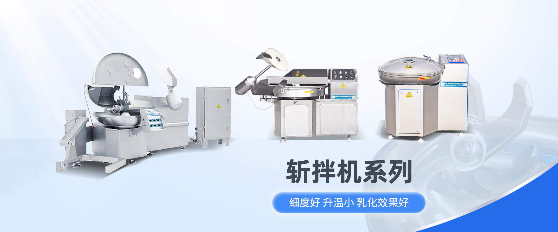 為各類肉制品提供不同的處理方式,包含的設備有絞肉機,真空滾揉機,拌餡機,鹽水注射機,灌腸扎線機,凍盤破碎機等多種系列產品。